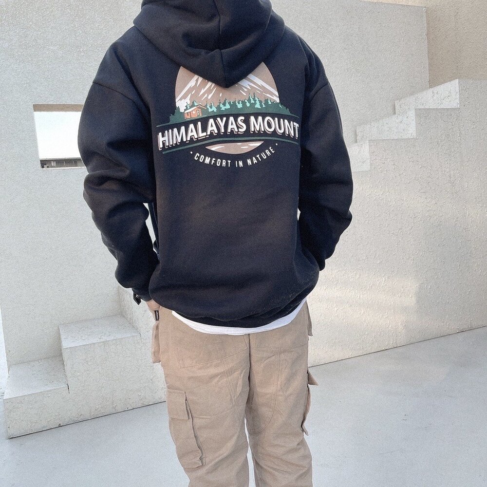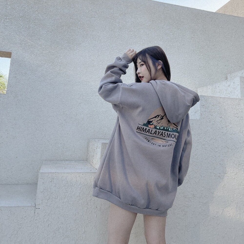 韓國 重磅內刷毛 HIMA山脈 帽T 厚磅 寬鬆帽T 雪山 印花 OVERSIZE 情侶帽T