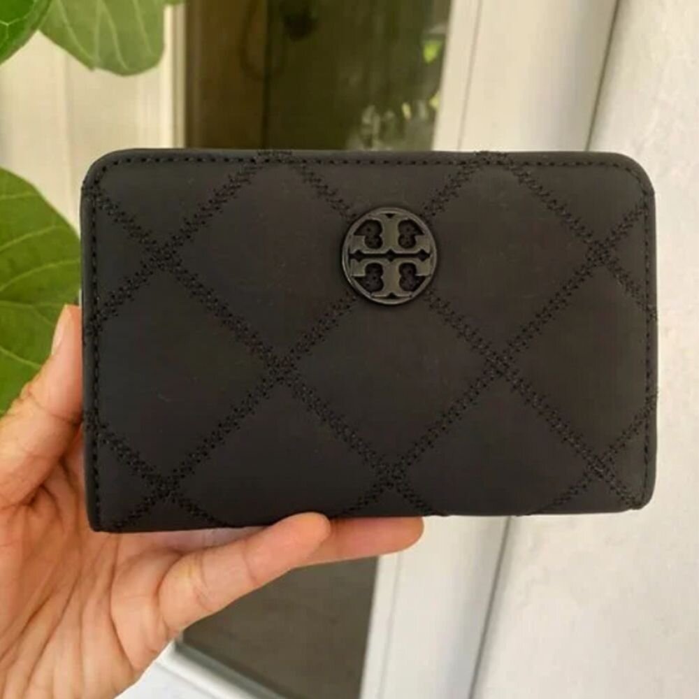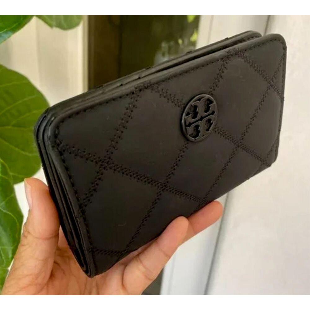 Tory Burch Willa 中夾~ 這款菱格紋軟牛皮中夾,除了足夠多的卡槽,還有拉鏈層可以放零錢,還有鈔票槽,仟元鈔票可以平放喔 顏色:消光黑