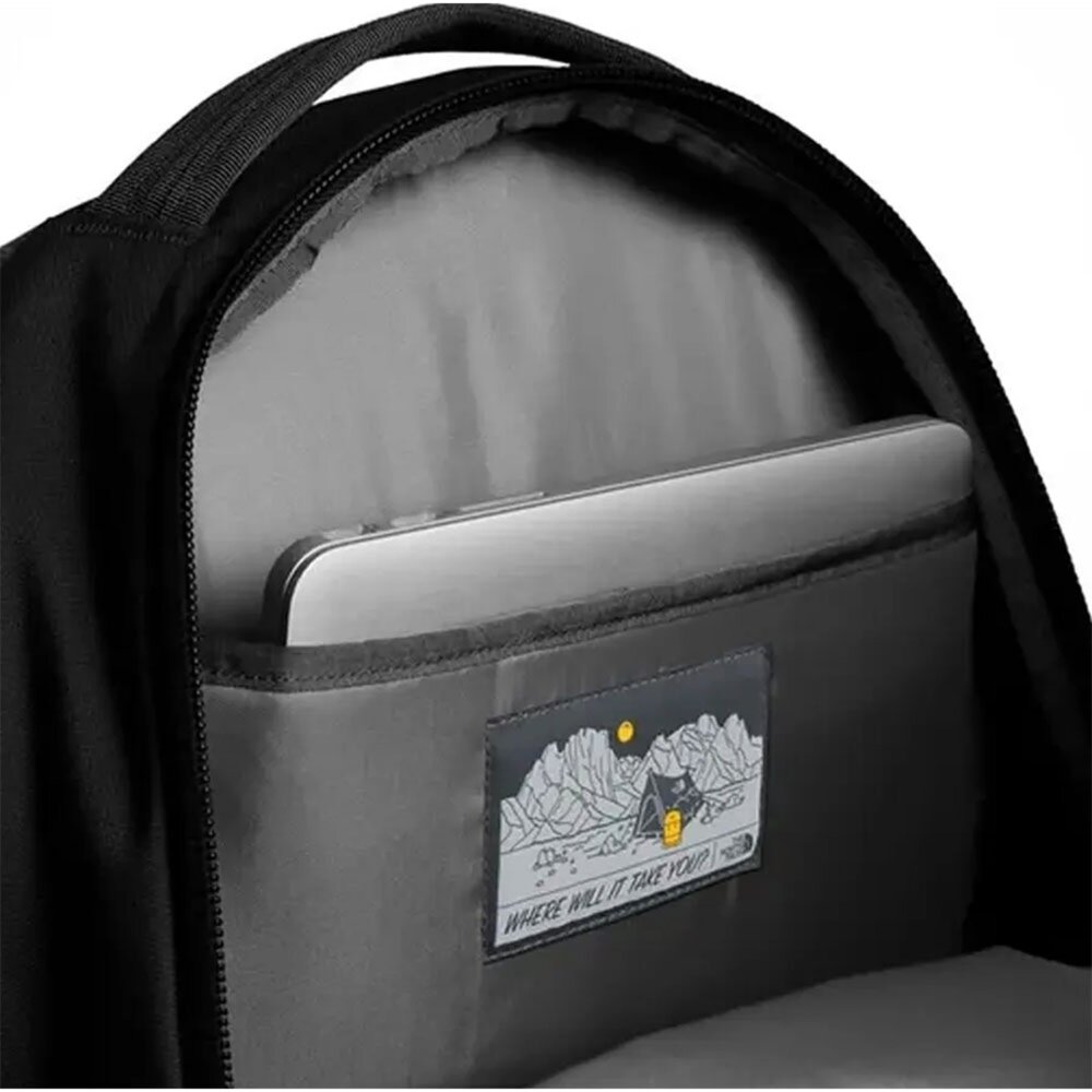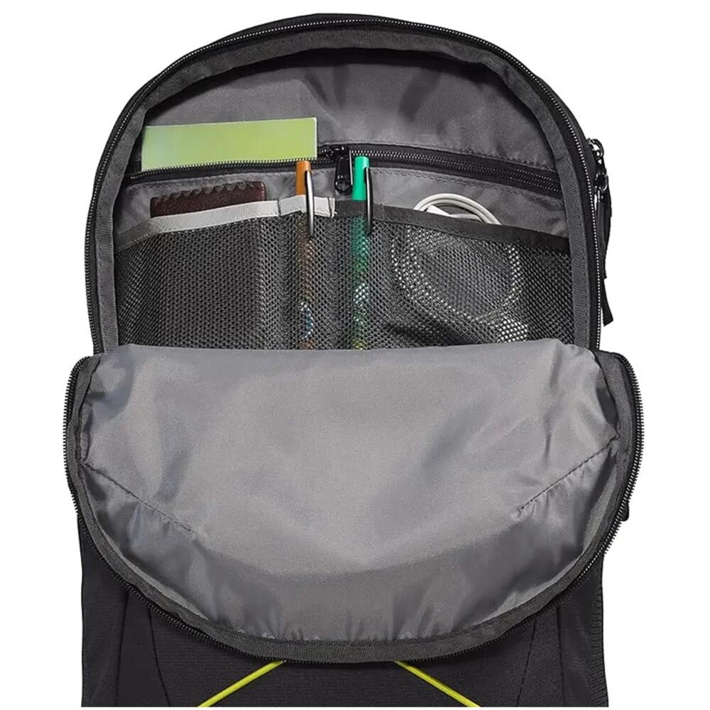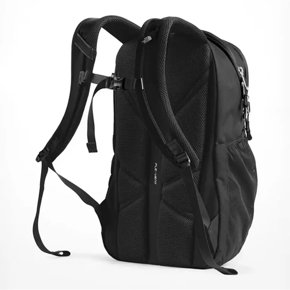 The North Face 背包設有寬敞的主隔層,可存放書籍和文件夾,以及高度保護的筆記型電腦隔層。前隔層配有內部整理袋、帶襯墊的平板電腦隔層、筆環以及安全的拉鍊口袋。自行車燈掛鉤、水瓶扣環和反光布料肩帶可在能見度低的區域提升可見度。升級版 FlexVent™ 背負系統旨在提供最佳舒適度,採用靈活的注塑肩帶、極其舒適的帶襯墊網布面板以及透氣的腰部面板。外部羊毛襯裡口袋可放置太陽眼鏡、手機或鑰匙。兩個外部網袋。