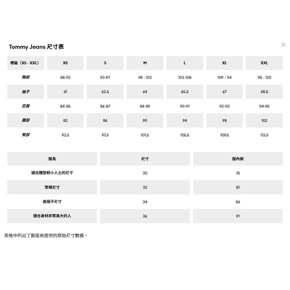 | 顏色 | XS | S | M | L | XL | XXL |