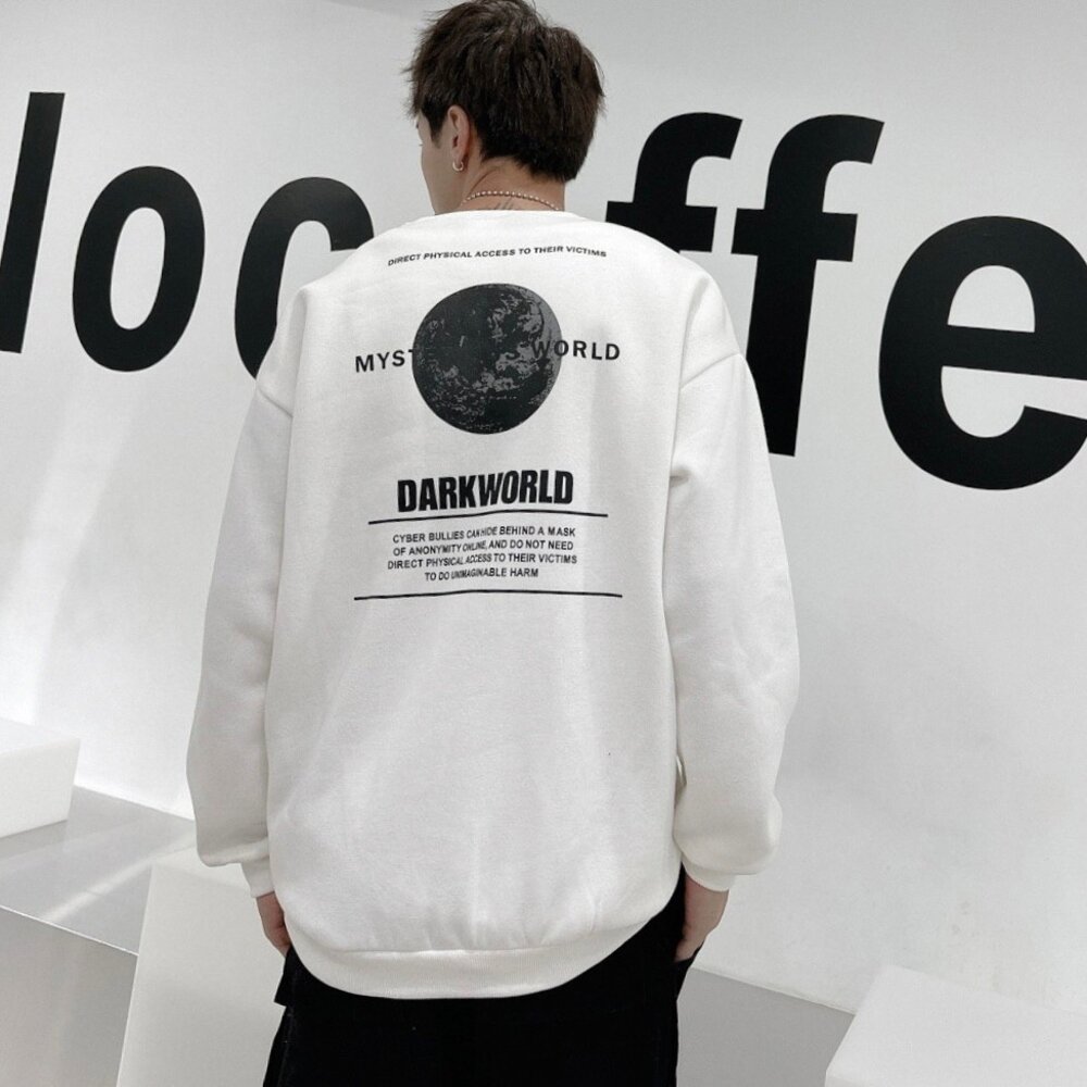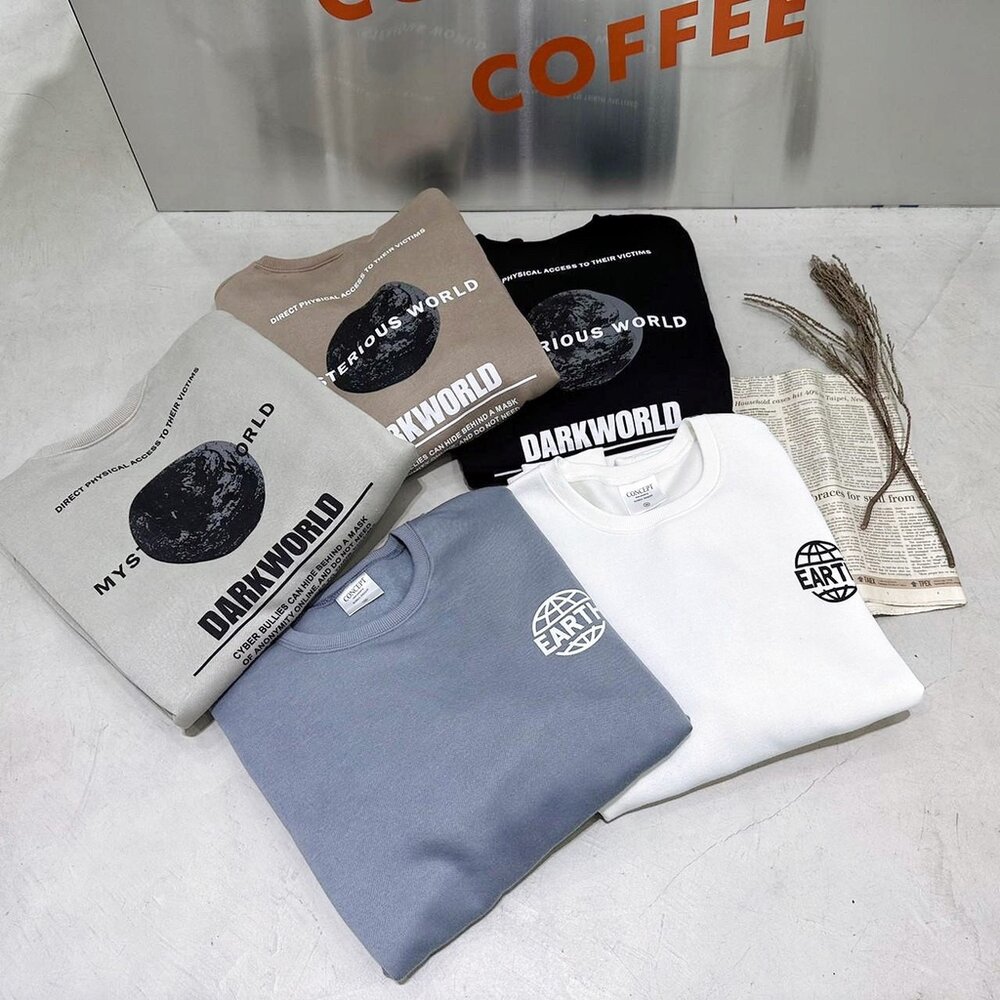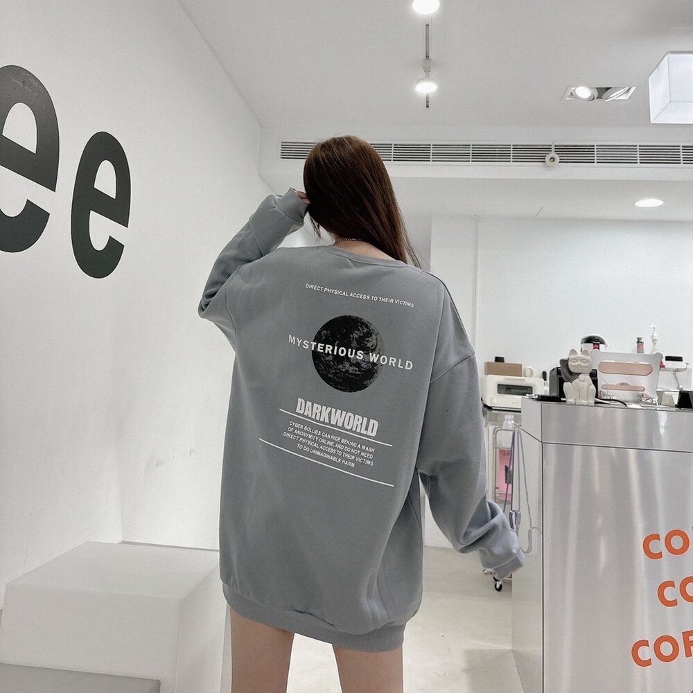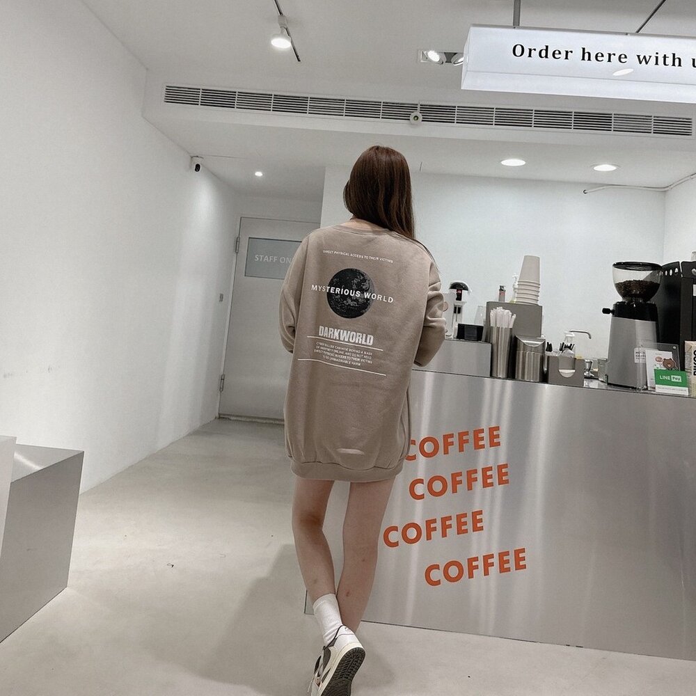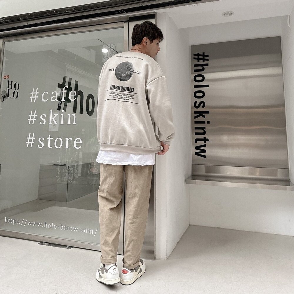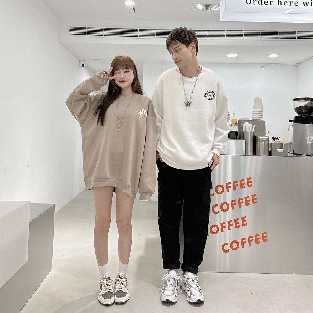 韓版 EARTH 地球 大學T 內刷毛 字母 印花 寬鬆 落肩 長袖 oversize 男女可穿 情侶款