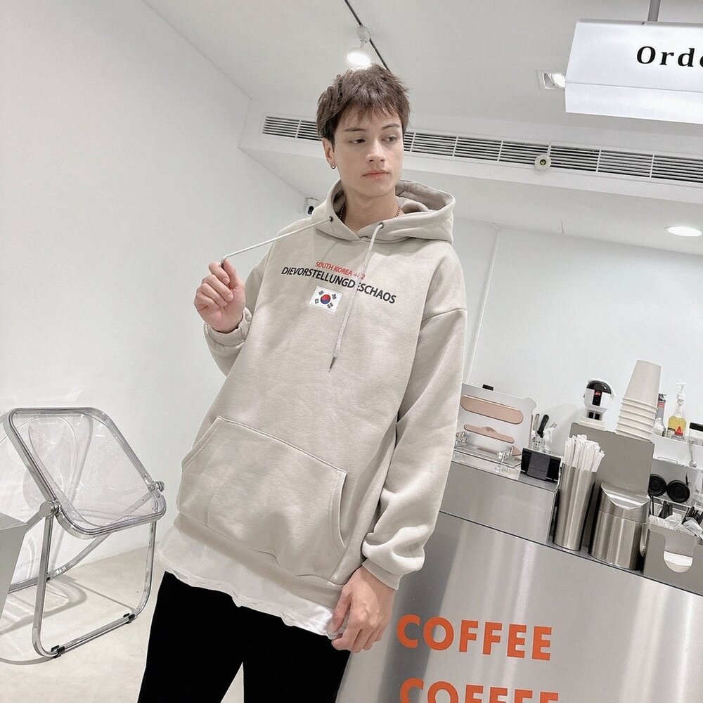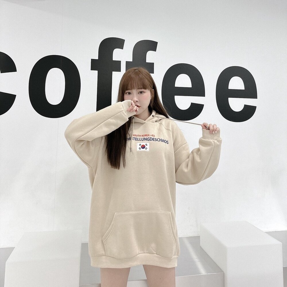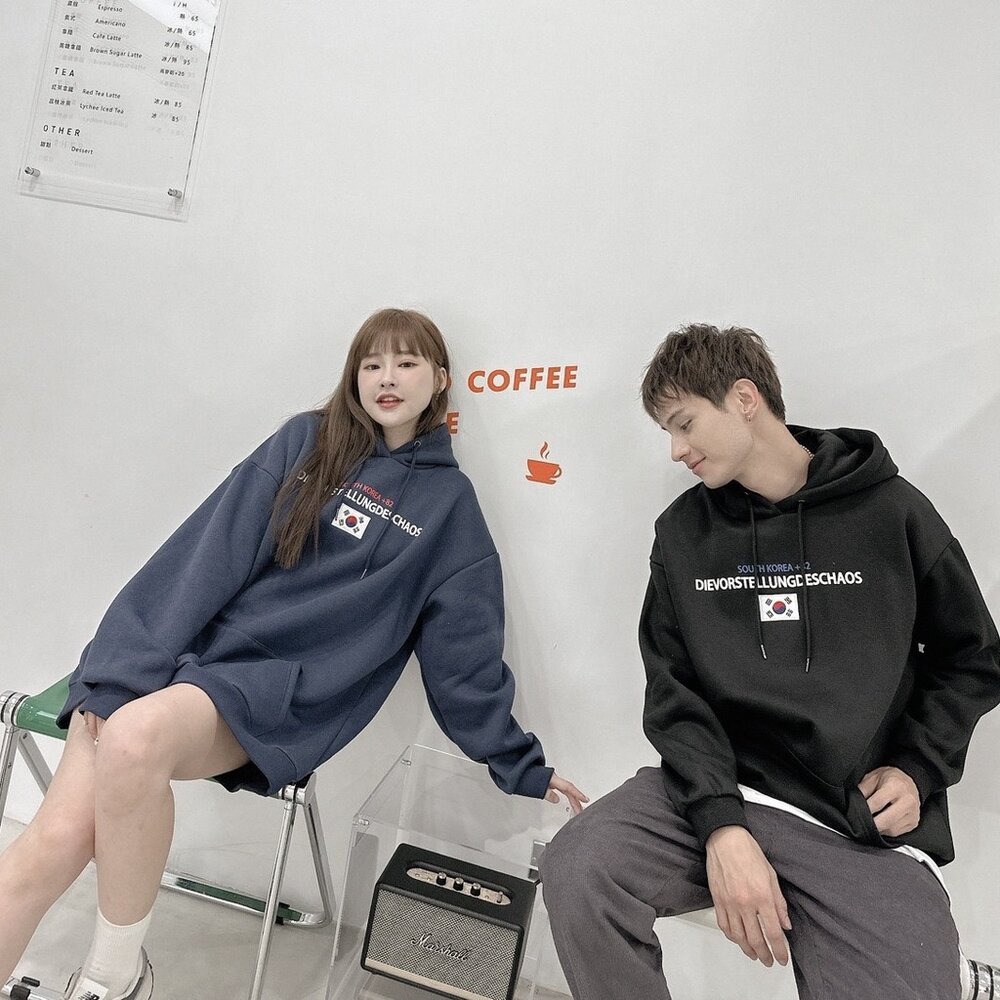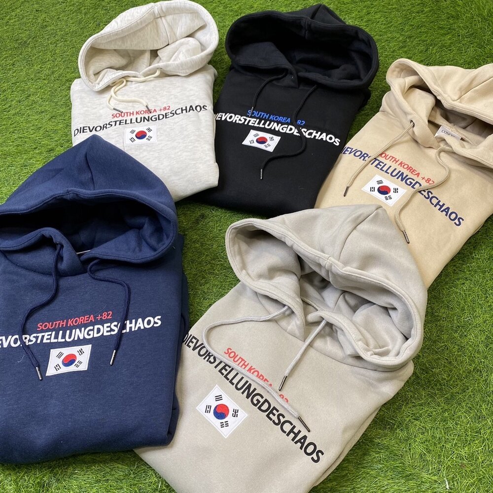 韓版 SOUTH KOREA +82 帽T 內刷毛 長袖 韓國國旗長袖 長T 刺繡國旗 寬鬆
