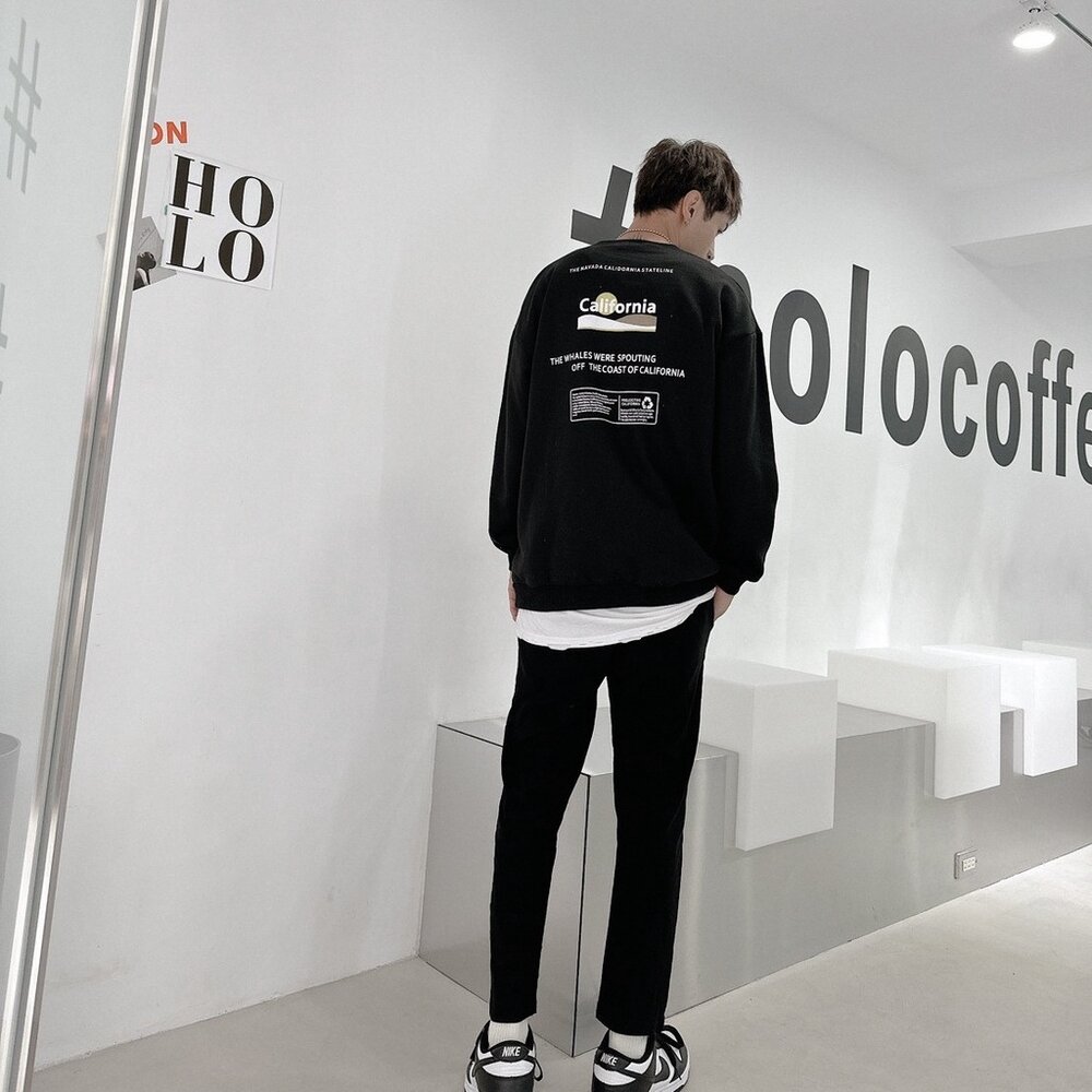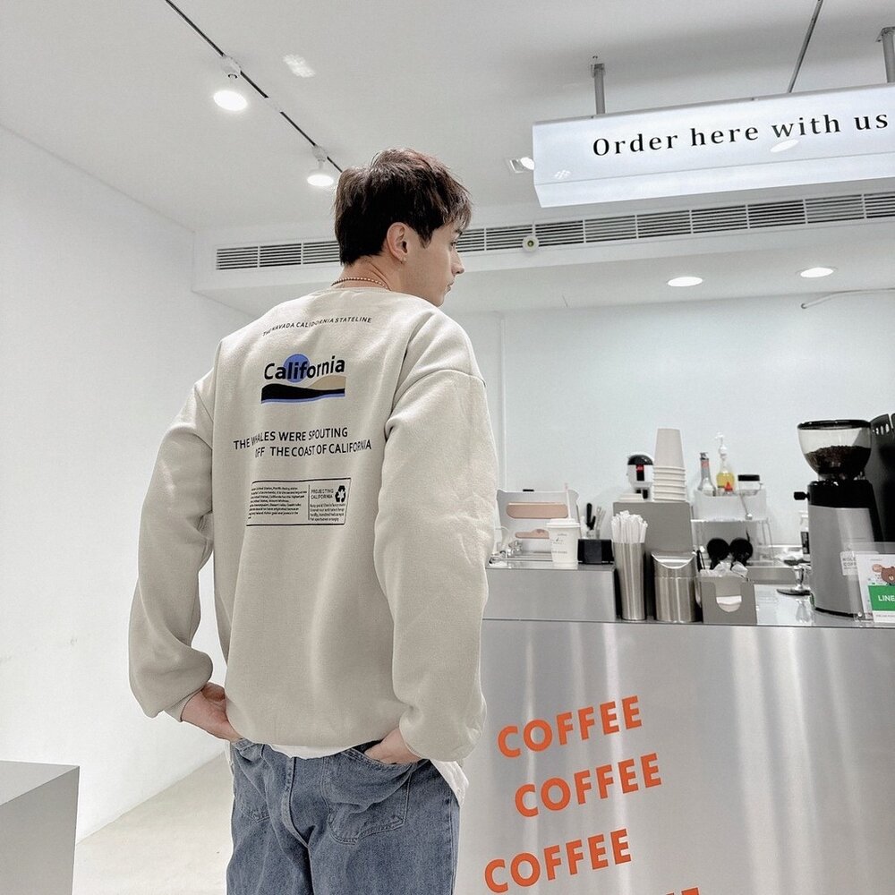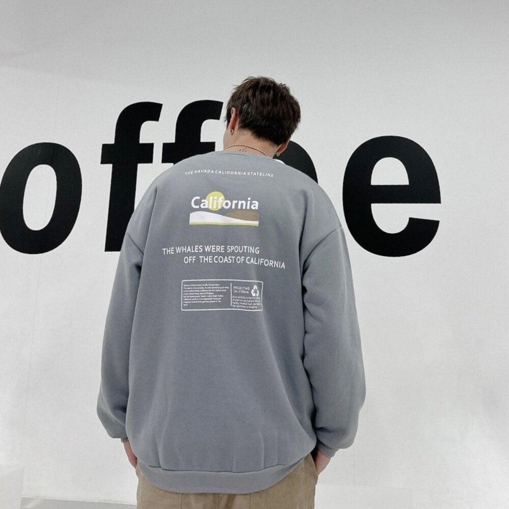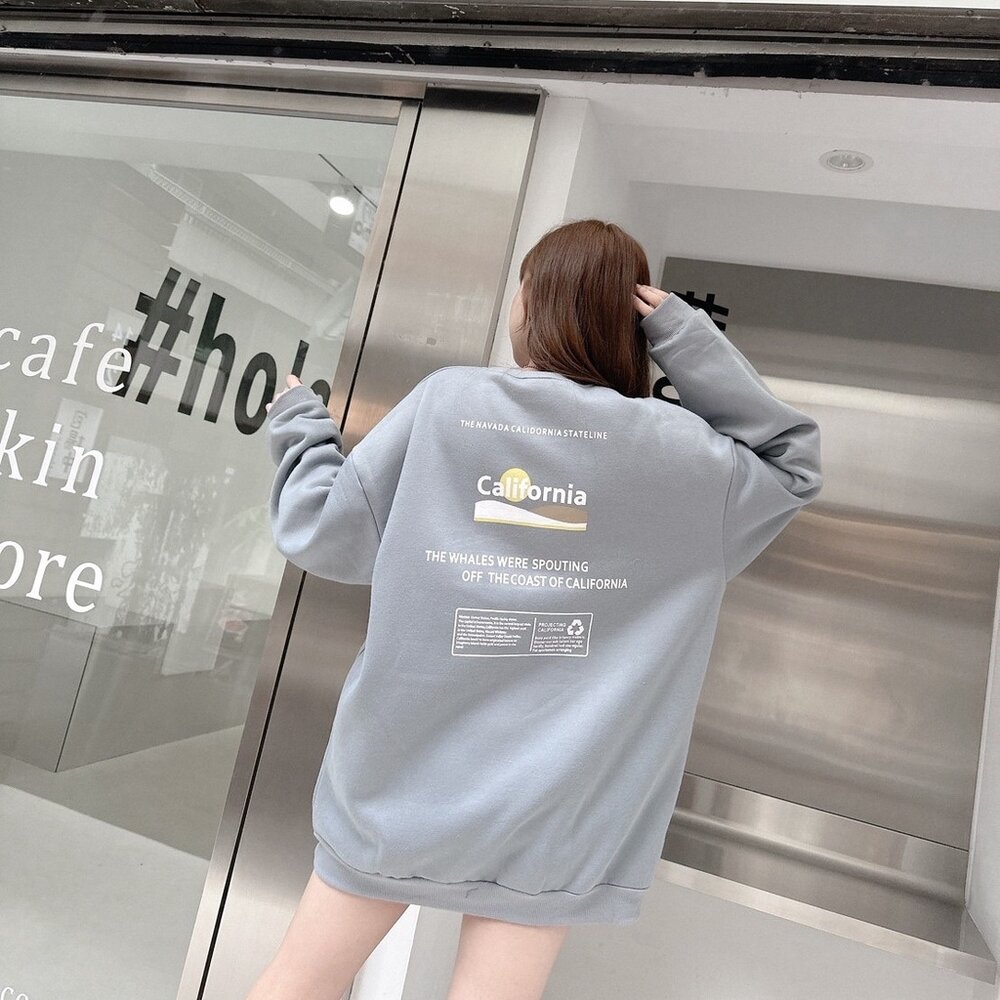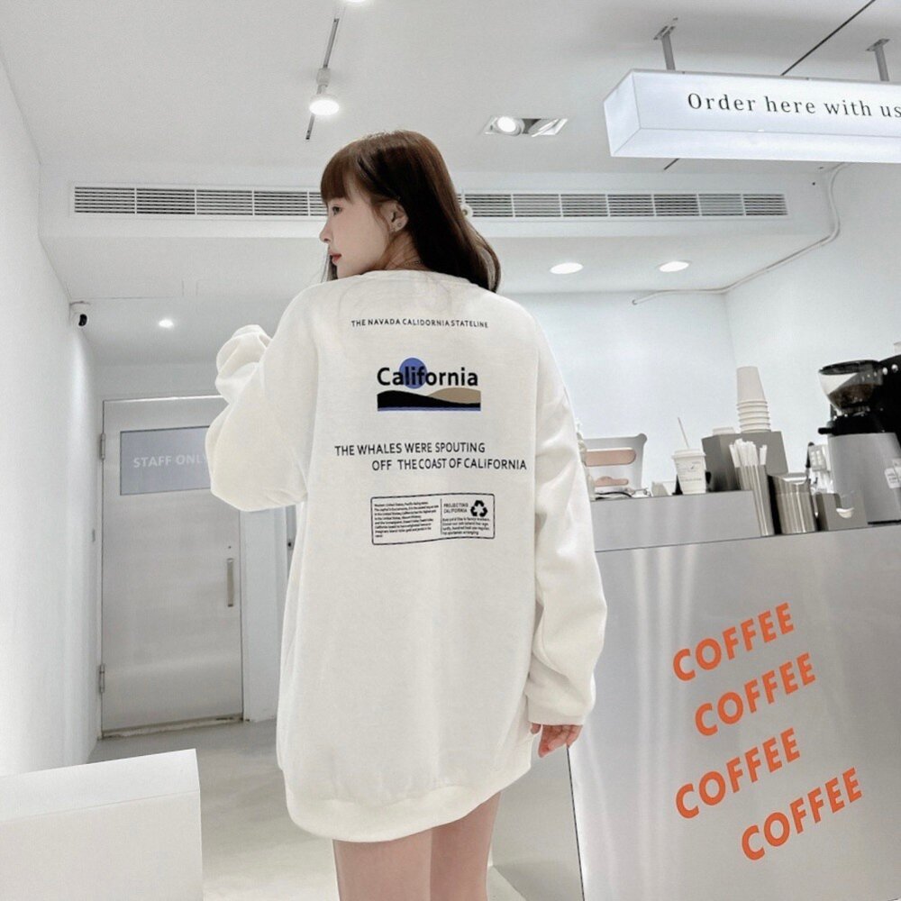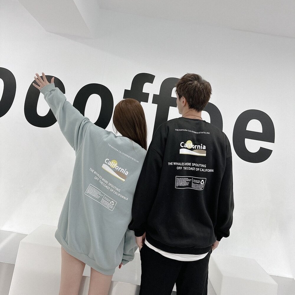 韓版 California 大學T 加州 內刷毛 長袖 情侶款 環保 寬鬆T 落肩 寬鬆 前後Logo