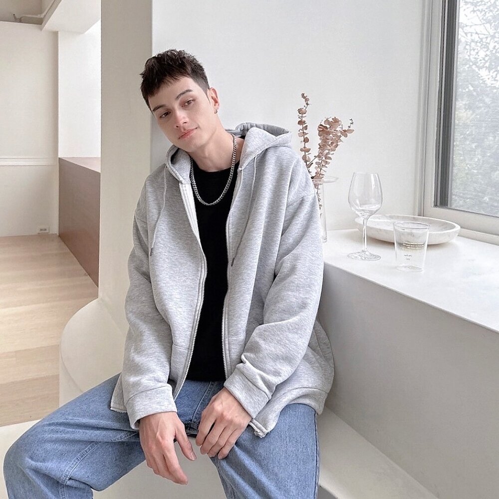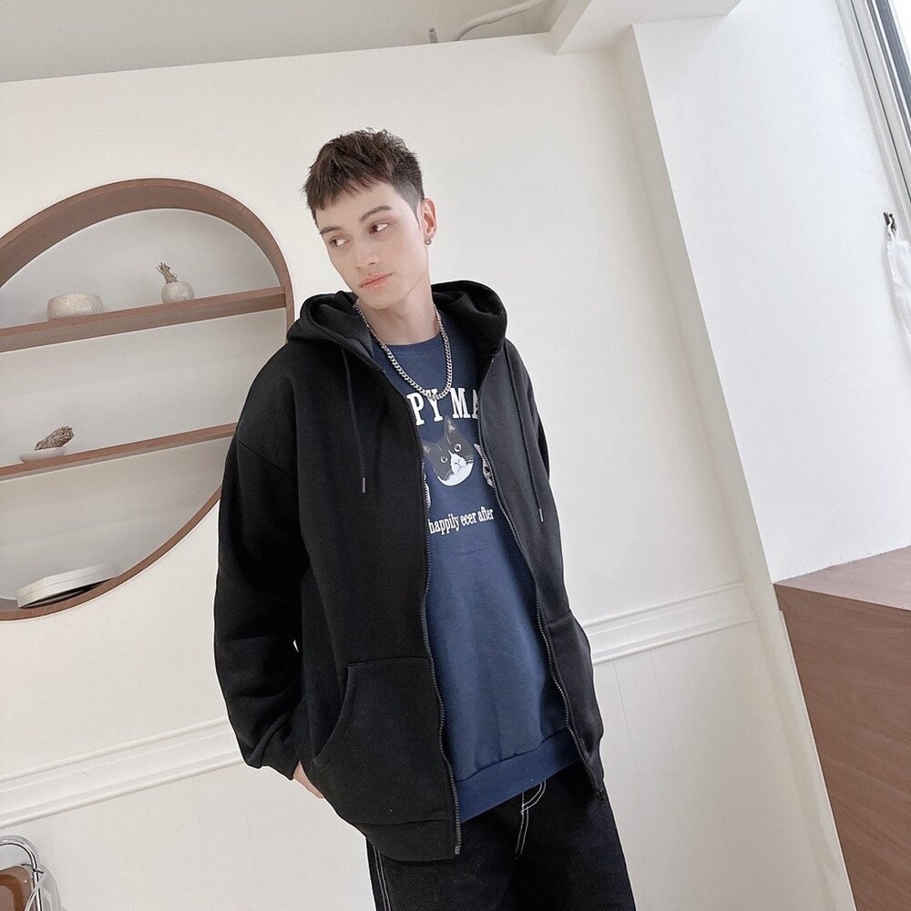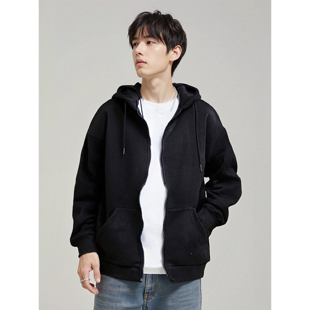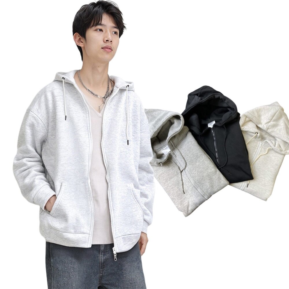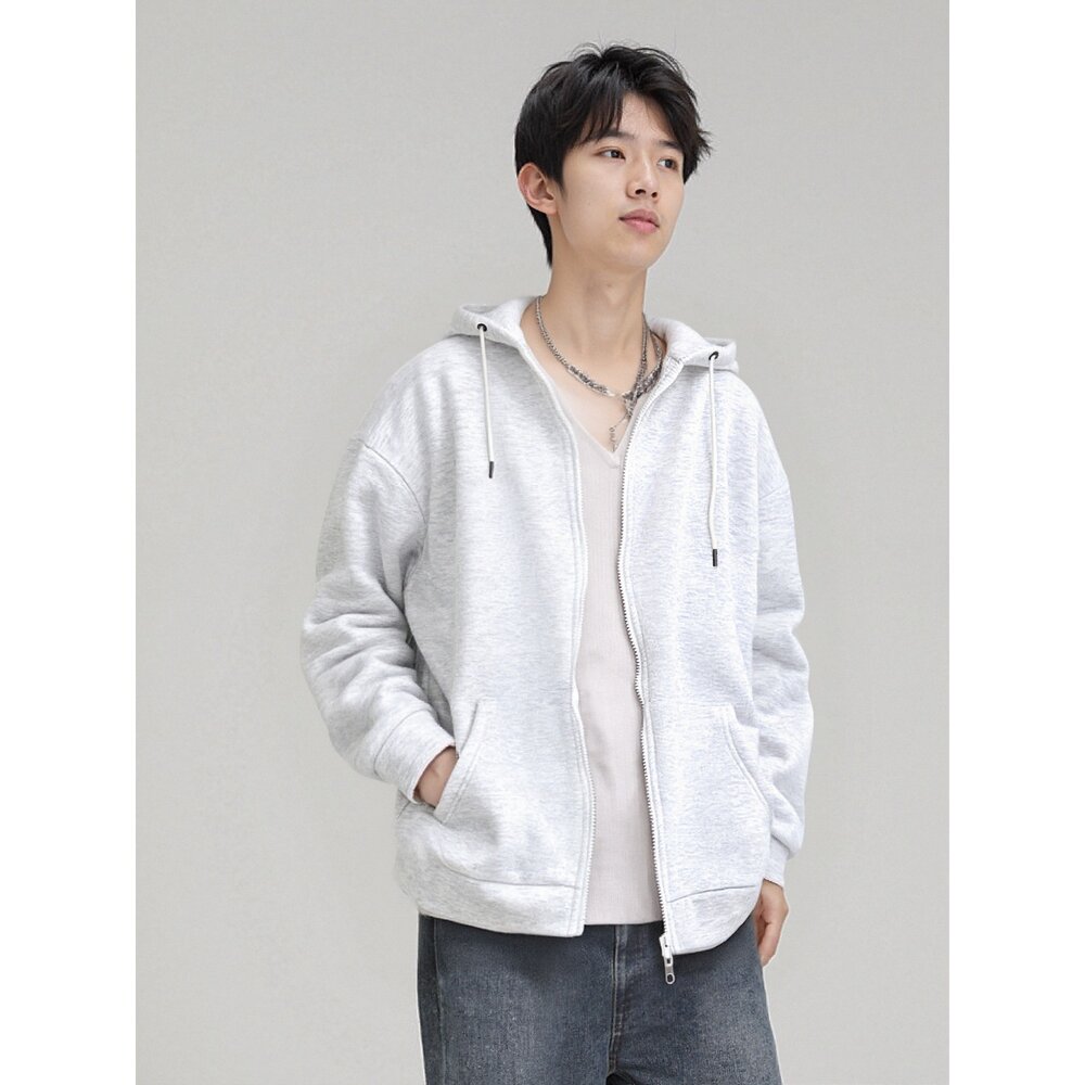 韓版 內刷毛 素面 高磅數 厚棉 連帽外套 情侶款 黑色 灰色 白灰色