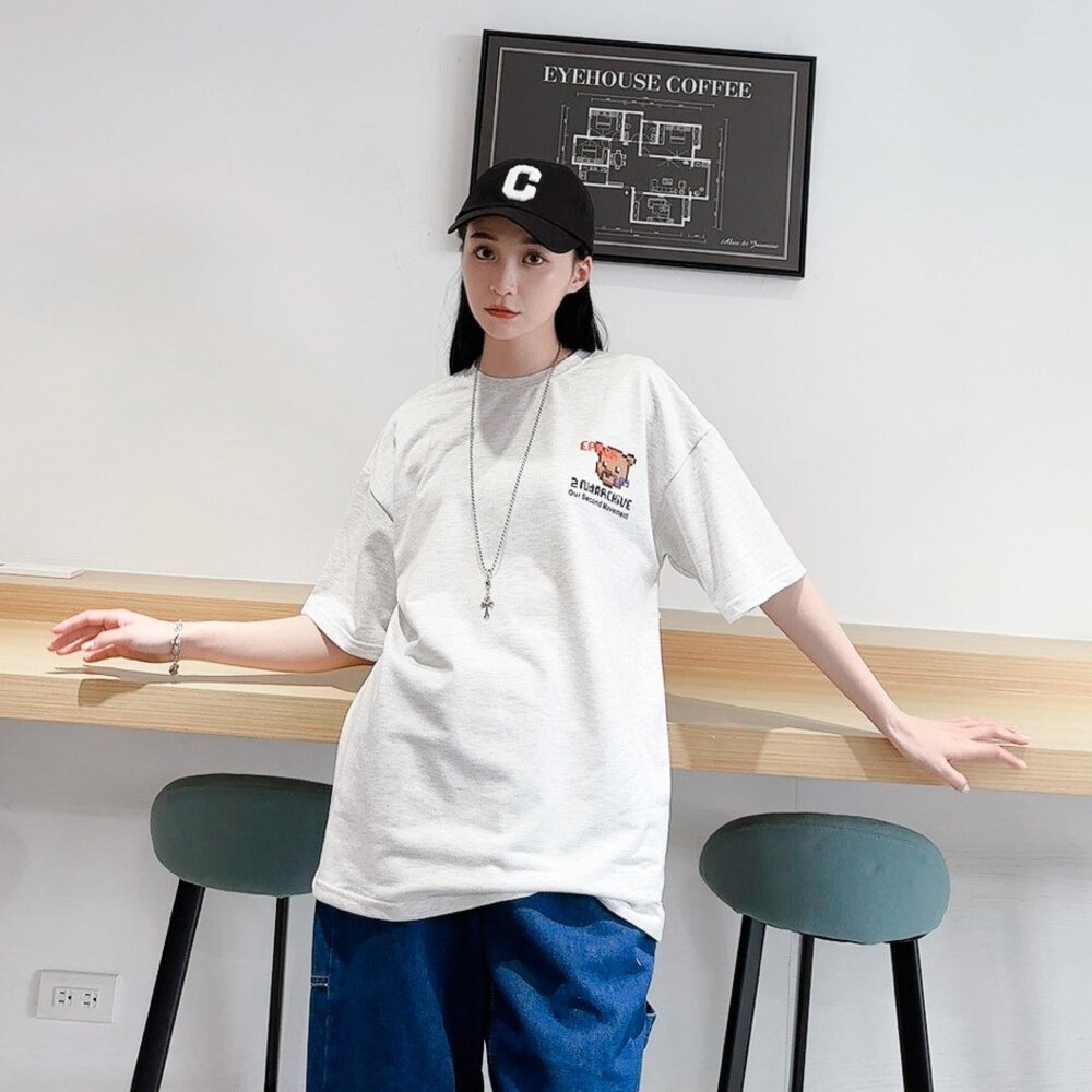 韓版 小熊 短袖 上衣 情侶款 韓版上衣 韓版短袖 短T 落肩 寬鬆 短踢 80225