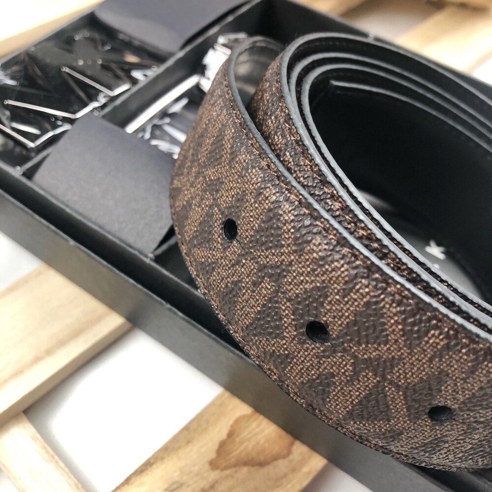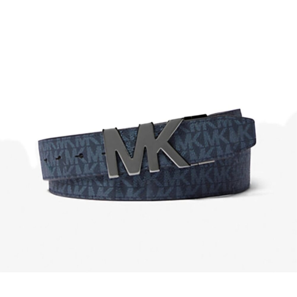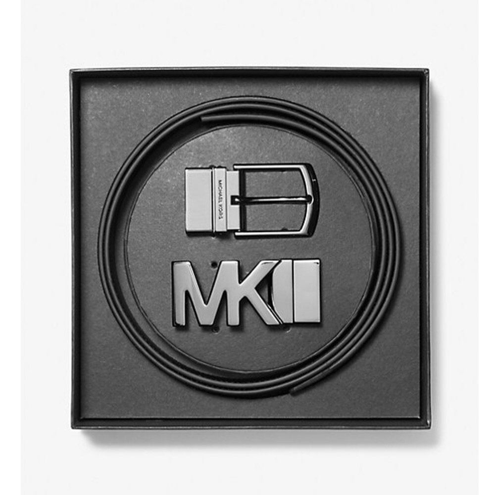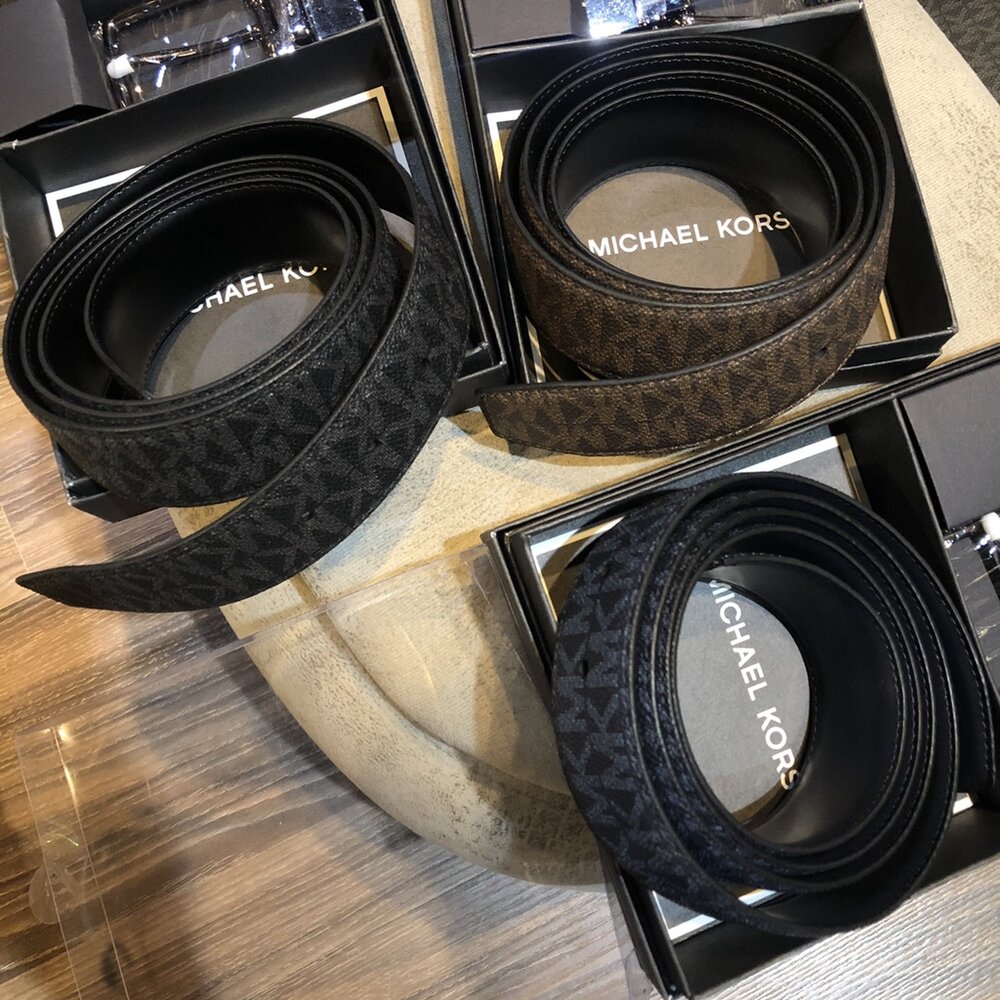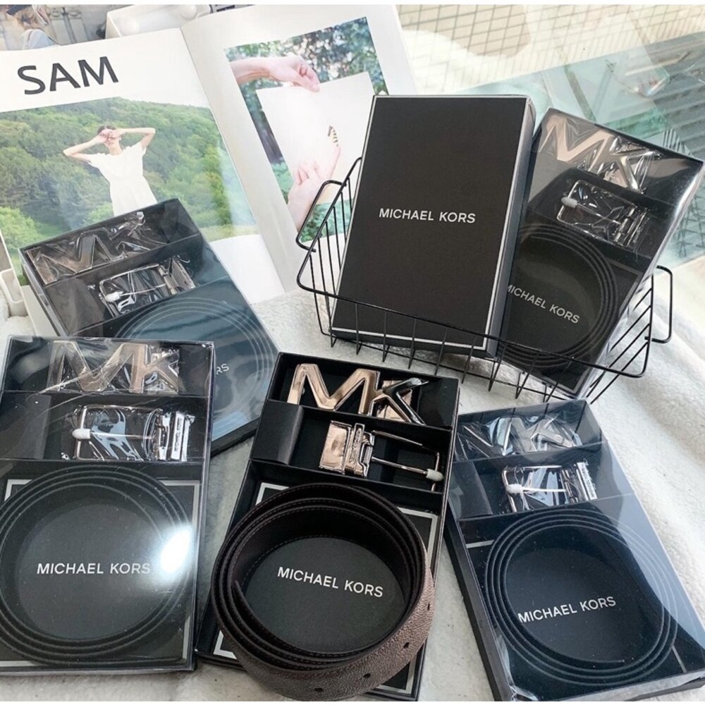禮盒版 Michael Kors MK 兩替換扣頭 滿版文字LOGO 雙面用 皮帶